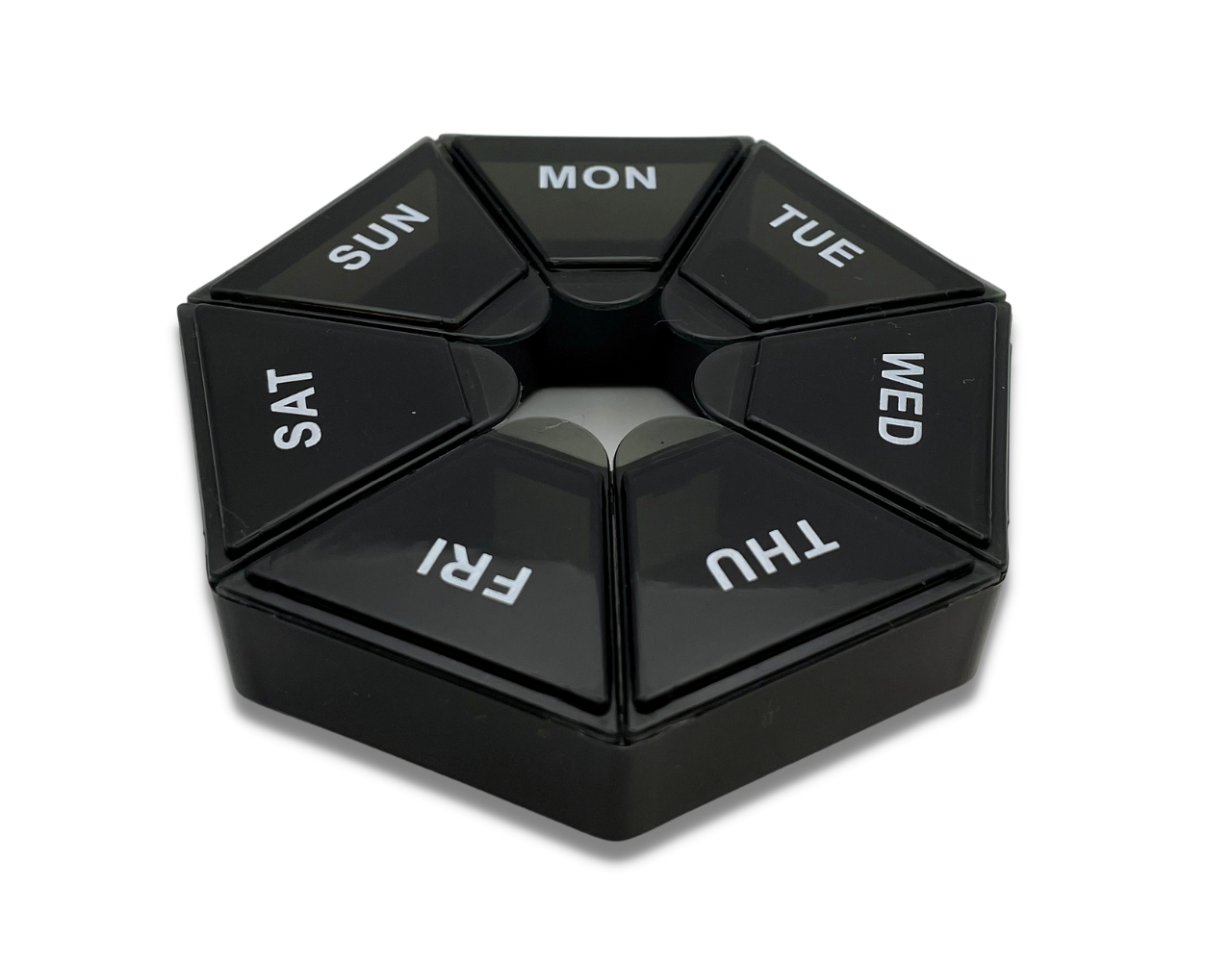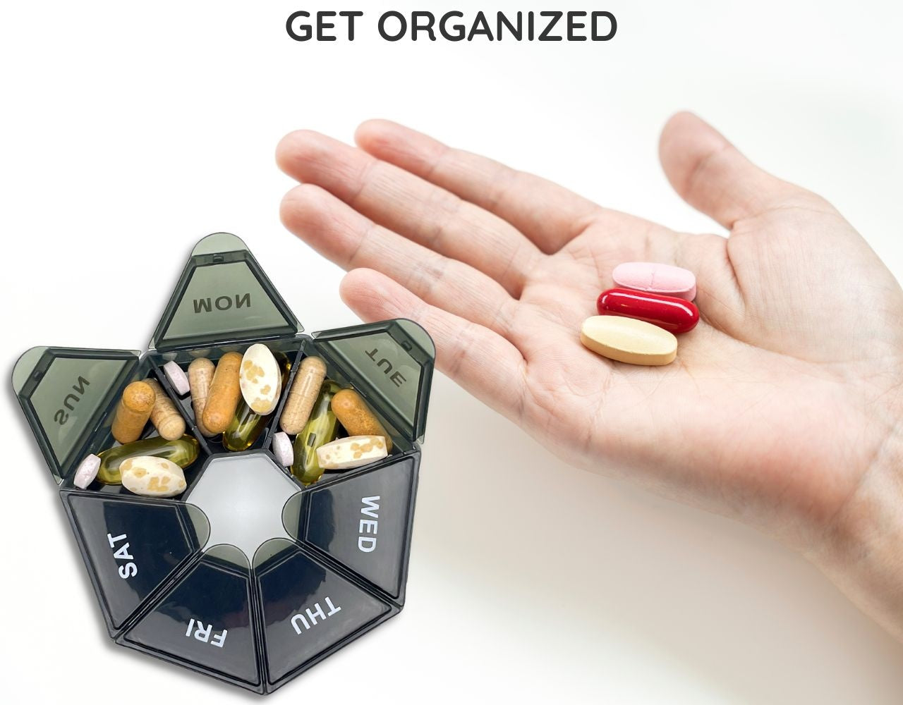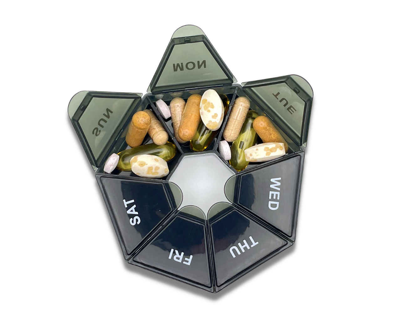 Handige organizer. Is makkelijk in gebruik en biedt ruimte voor 5 supplementen per dag. Iedere dag heeft zijn eigen compartiment, waardoor het organiseren van je dagelijkse supplementinname eenvoudig en overzichtelijk wordt.