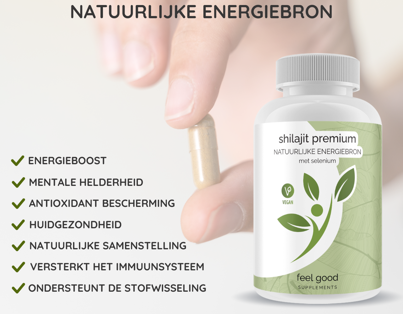 Natuurlijke Energiebron. Elke capsule bevat 500 mg Shilajit, met een hoog gehalte van 20% fulvinezuur en verrijkt met selenium. Geschikt voor veganisten en biedt een natuurlijke bron van energie en vitaliteit voor een actieve levensstijl.